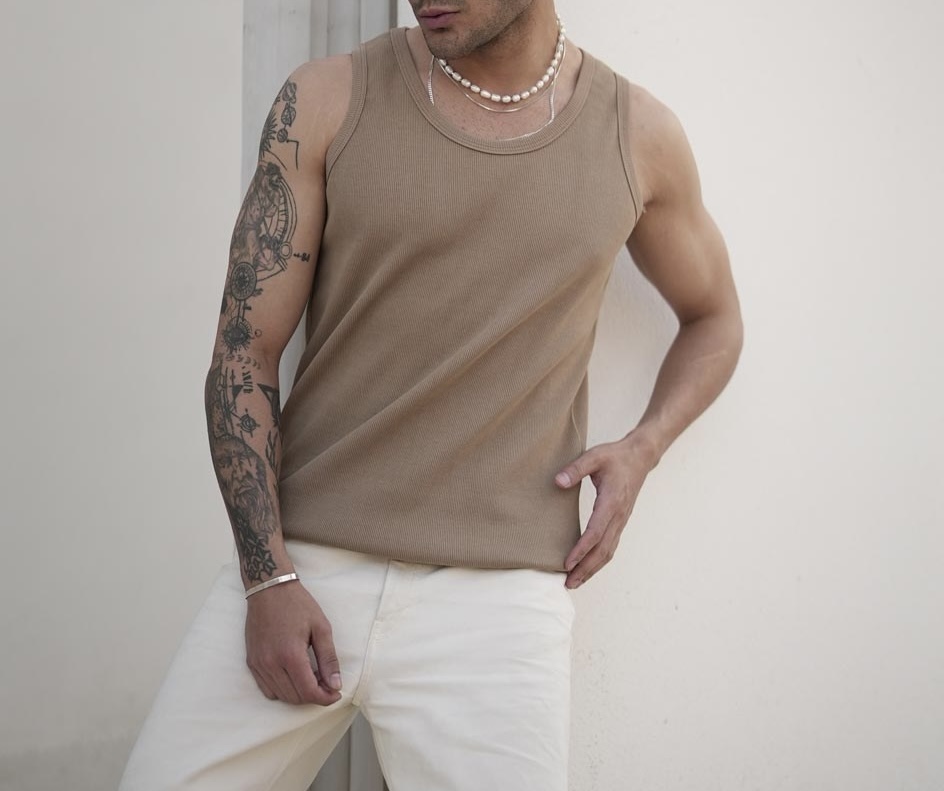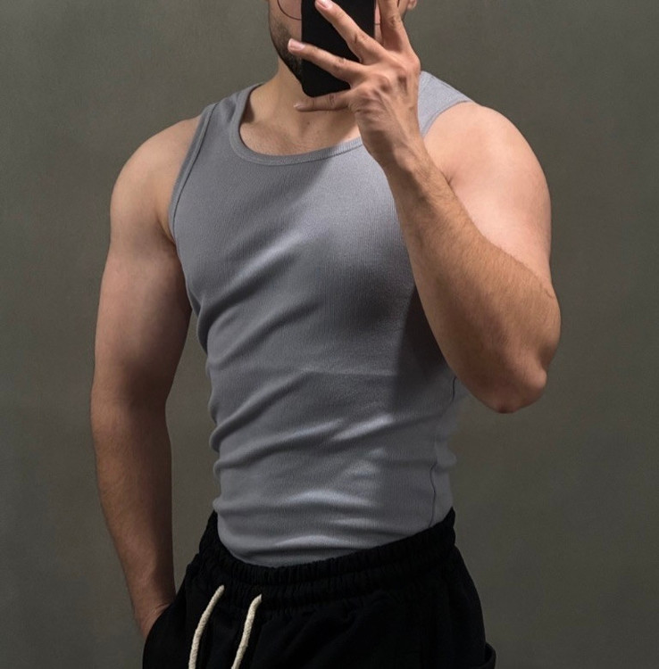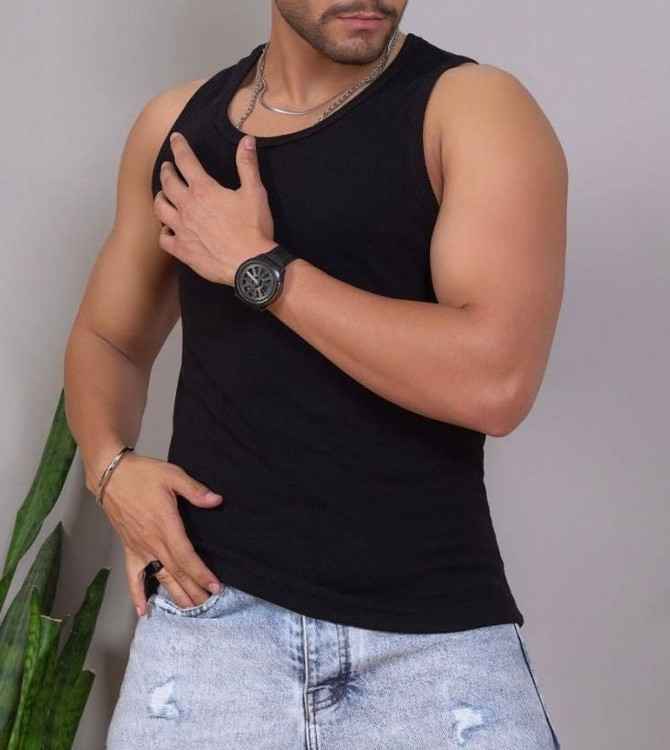 تنک تاپ مشکی مردانه | پارچه نخی فول کش کبریتی ریز خنک