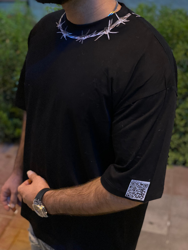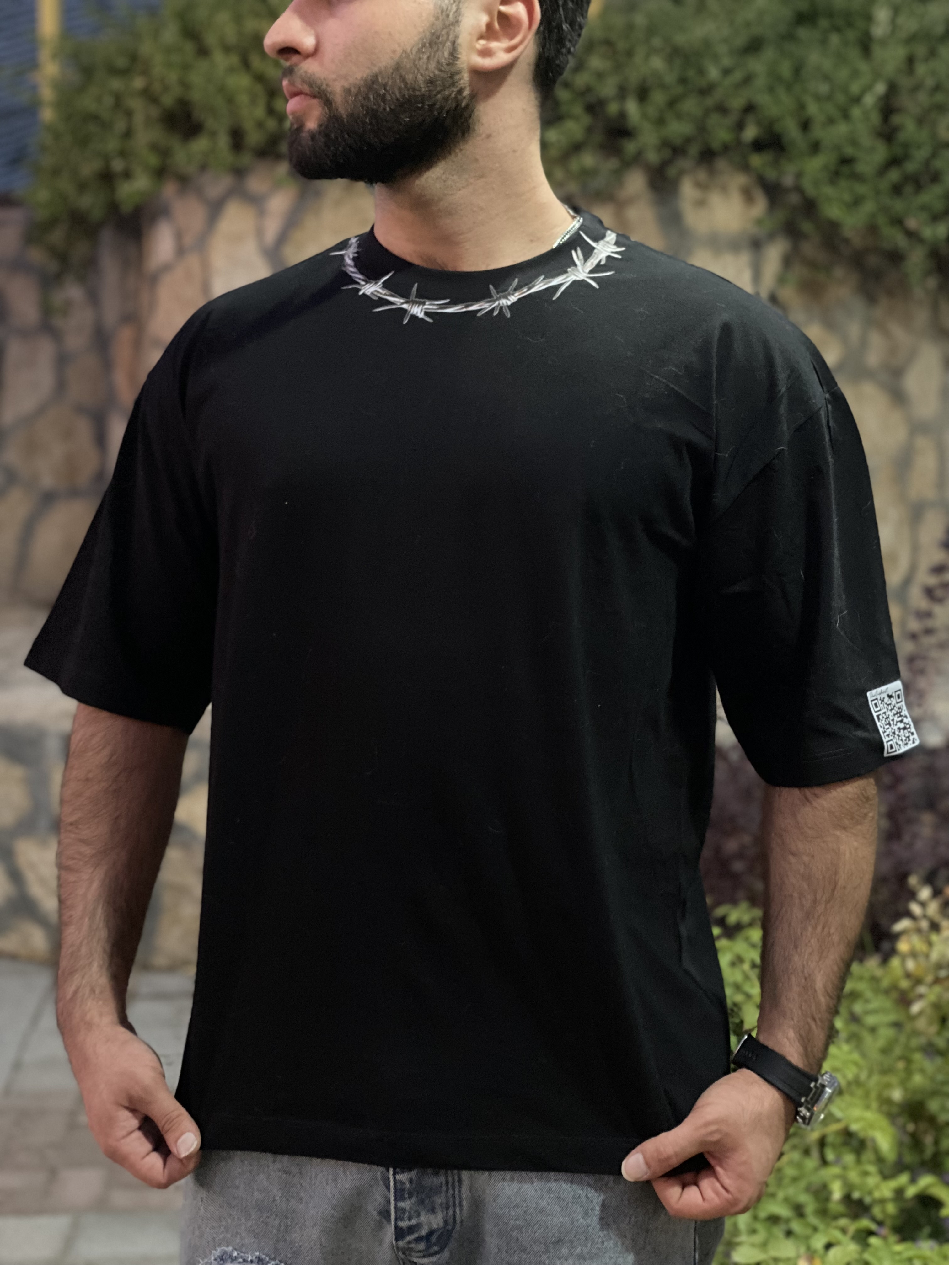 تیشرت مردانه قواره باکسی طرح سیم خاردار