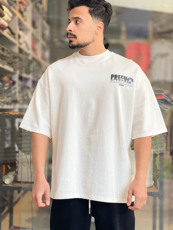 رنگ سفید با جلوهای تمیز و مینیمال، انتخابی ماندگار برای استایلهای روزمره و شهری است. طراحی نوشتاری بزرگ در پشت لباس، در کنار نوشته ظریف جلوی سینه، تعادل دقیقی بین سادگی و جسارت ایجاد میکند.